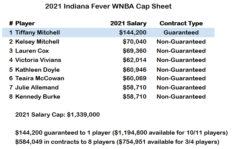 Wheeler missed the entire 2020 season due to COVID-19, but the Fever still added a Time Off bonus to her contract right at the end of the regular season, which is an extra indication that they'd particularly like her to return. They could even use their core designation on her to make sure she doesn't leave, although a supermax salary would seem like an overpay.