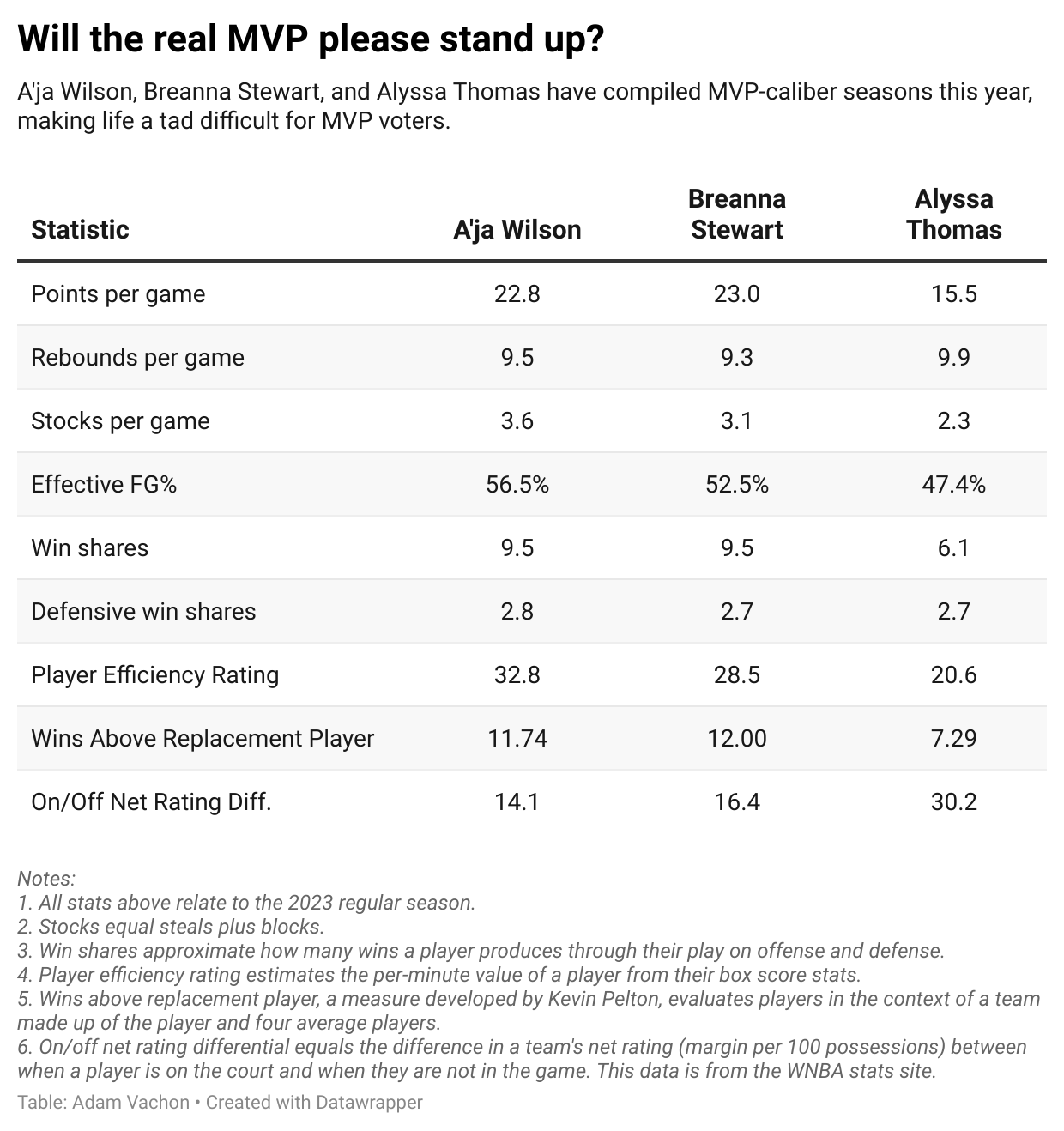13 points – The margin in the three-way race for WNBA MVP