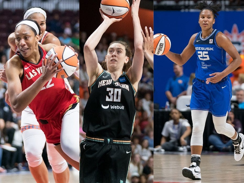 It’s both a shame and a delight that fans witnessed three MVP-caliber campaigns in the same season. It’s a bummer that only one of A’ja Wilson, Breanna Stewart, and Alyssa Thomas could take home the WNBA’s highest on-court individual accolade. However, basketball fans in 2023 witnessed some of the best individual seasons in WNBA history. Two-time MVP A’ja Wilson had arguably the best season of her career, leading Las Vegas to the fourth-best regular-season record in league history and becoming the first player in over a decade to rank in the top three in points, rebounds, and assists per game over a single season. Breanna Stewart, the steadying force behind a superteam in New York struggling to gel in the early going of the 2023 season, had very similar numbers as Wilson. Alyssa Thomas’ season was unlike anything the WNBA has seen. Her triple-doubles are well-documented (and more on that below). But Thomas also propelled a Connecticut Sun team that had lost 2021 MVP Jonquel Jones (free agency) and 2022 Sixth Player of the Year Brionna Jones (season-ending injury) to nearly the same record as 2022, playing the second-most minutes per game of any WNBA player since 2005.