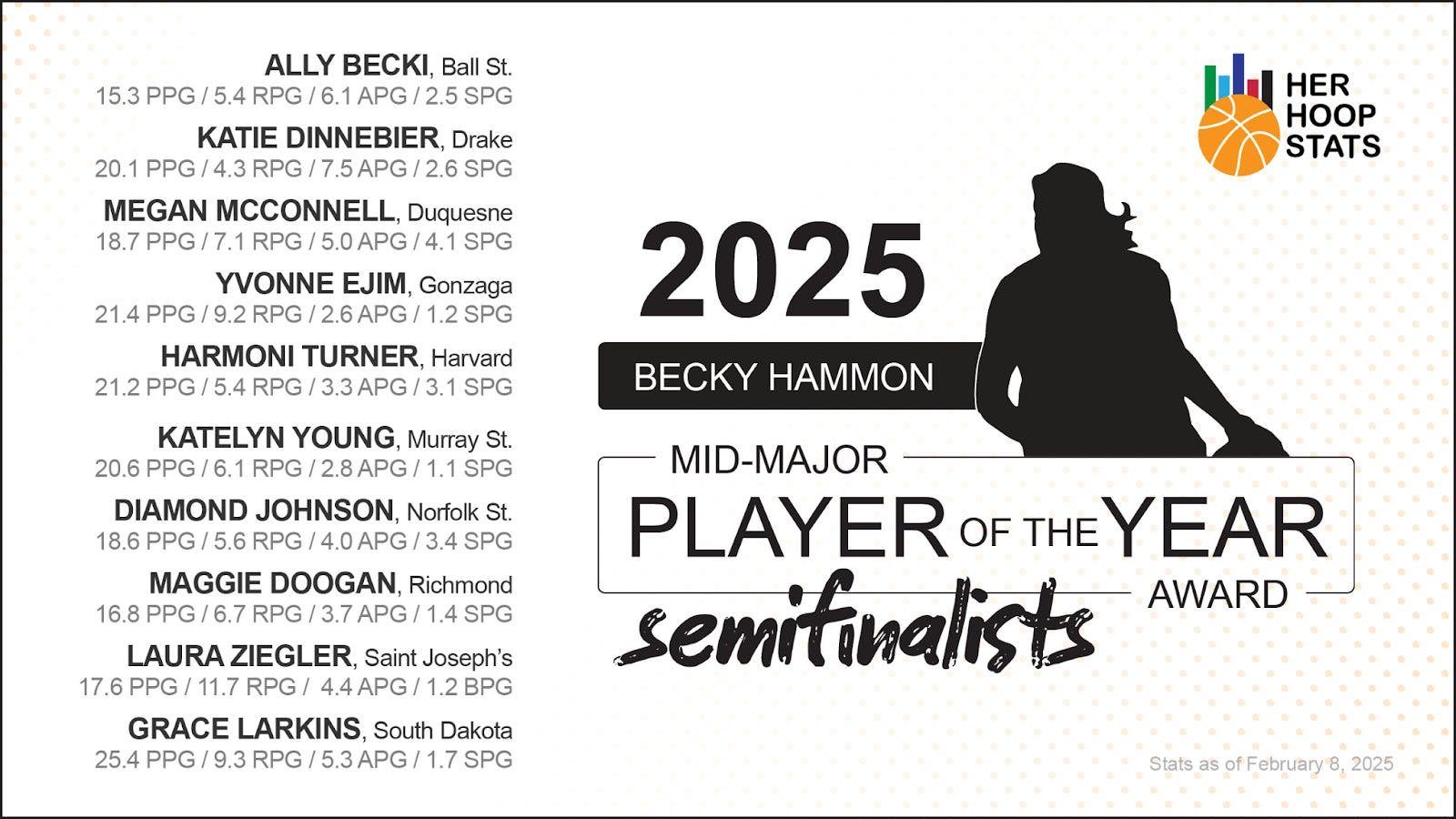 2025 Becky Hammon Mid-Major Player of the Year presented by Her Hoop Stats Semifinalists