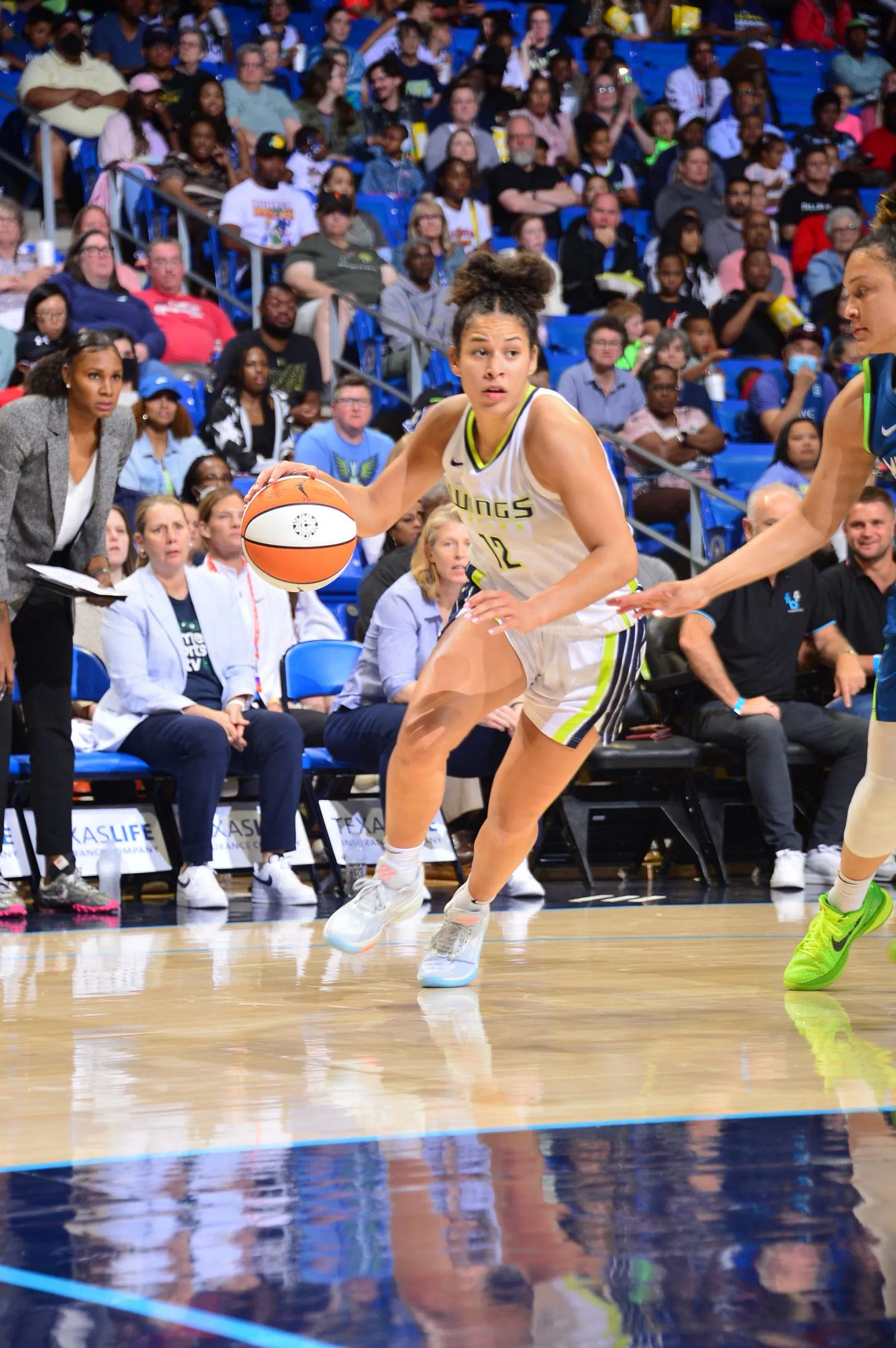 On this play, an Ogunbowale miss turns into a Burton offensive rebound. She hasn’t even landed back on the ground before she’s finding Howard, who scores on the layup. That’s just one example, but time after time when watching Burton when the ball’s in her hands, she’s so fast to identify where the ball needs to go. She doesn’t even need to be the primary ball-handler. There was one play where Crystal Dangerfield is the one with the ball in her hands, and she finds Burton at the top of the arc. Almost instantly, Burton sees Howard posting up in the paint and directs the ball into her. It’s like she’s got the kind of court awareness that Courtney Vandersloot or Chelsea Gray has, though maybe not quite as refined just yet.