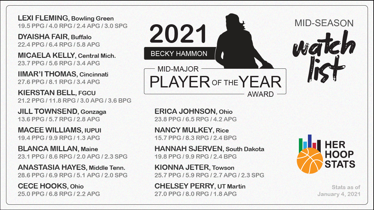 2021 Becky Hammon Mid-Major Player of the Year Midseason Watch List