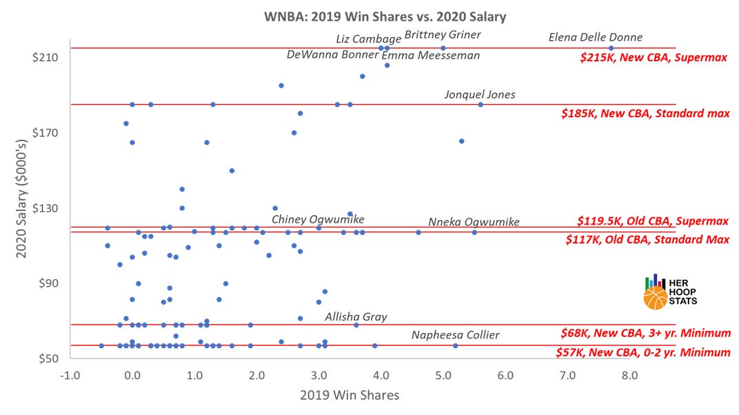Are the best players in the league making the most in 2020? Which players are the biggest bargains in the WNBA right now? How does the new CBA affect how talent is being rewarded compared to their performance?
