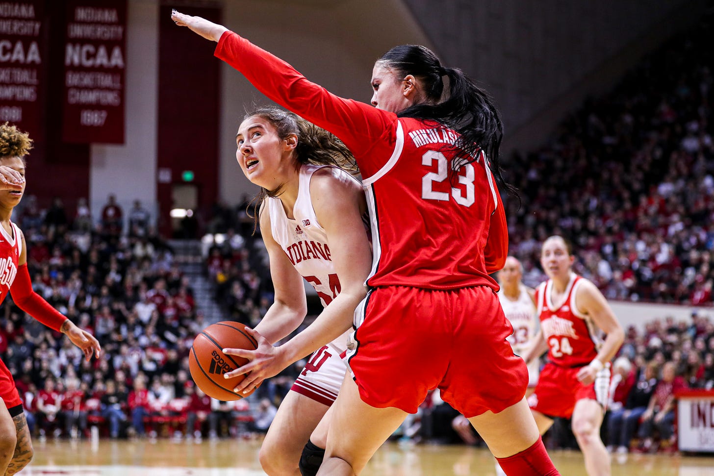 During Big Ten matchups, Holmes’ production has only increased—averaging 24.1 points and 9.0 rebounds per contest—and it’s been a determining factor in the Hoosiers’ recent conference wins. In their 92-83 victory over Michigan, Holmes put up 25 points and pulled down 10 rebounds. And when she went against Ohio State, she scored 26 points on 11-for-13 shooting and grabbed four rebounds.