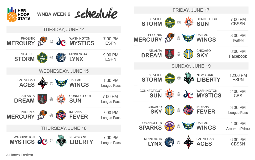 WNBA schedule this week (All times Eastern)