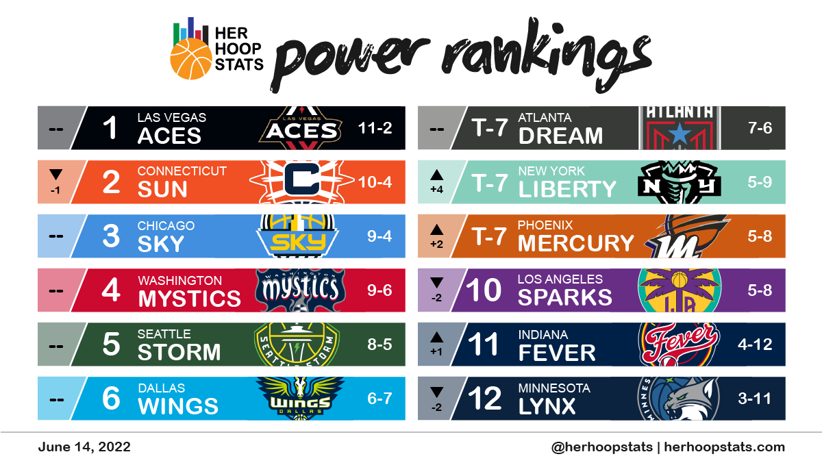 So, Aces and Sun fans should be feeling pretty darn good about their respective team’s championship prospects, right? Let’s just say they should be cautiously optimistic. Teams with a double-digit net rating are the cream of the WNBA crop, and (hot take alert) the best teams have the best chances of making it to and winning the WNBA Finals. However, the season is barely a third over. A lot can change the championship picture over the remainder of the season (e.g., injuries, other teams catching fire, etc.). Also, the stat above is partially reflective of the massive advantage the top two seeds enjoyed under the old playoff format (that ran from 2016 to 2021). The new playoff format, which eliminates all byes, reduces the likelihood that the regular season’s best teams will be one of the two teams left standing come mid-September.