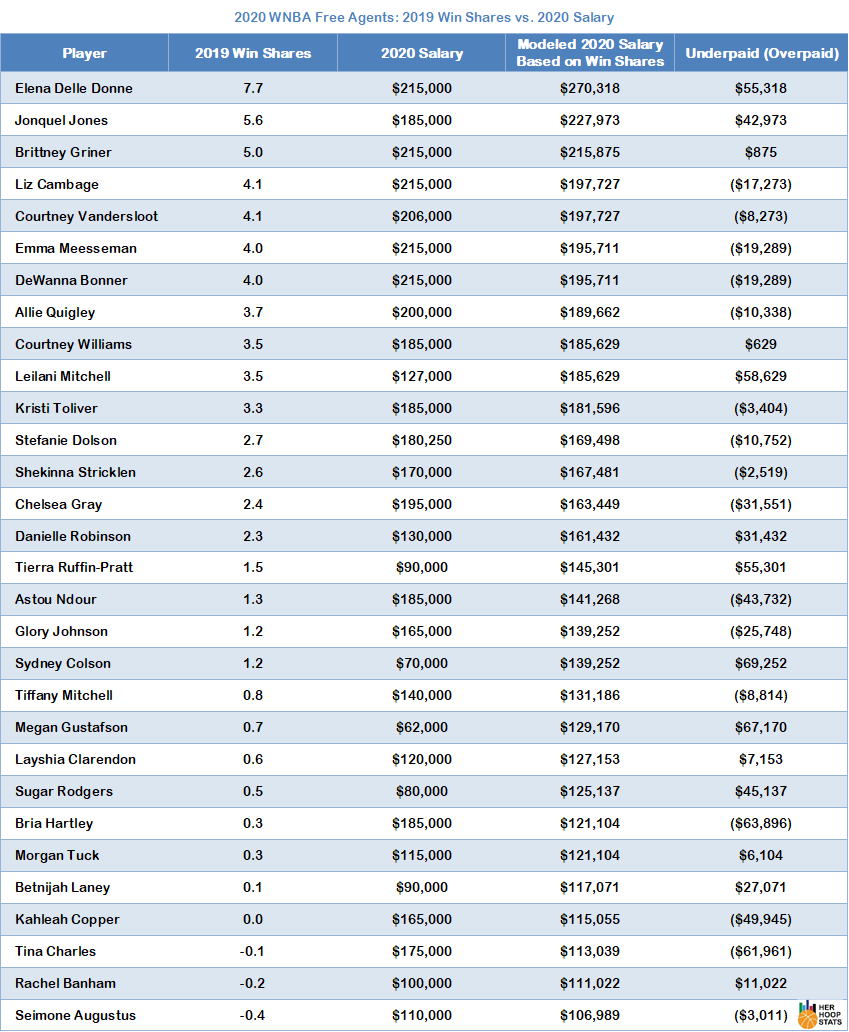 Comparing 2020 WNBA salaries with 2019 performance for this year's free agents