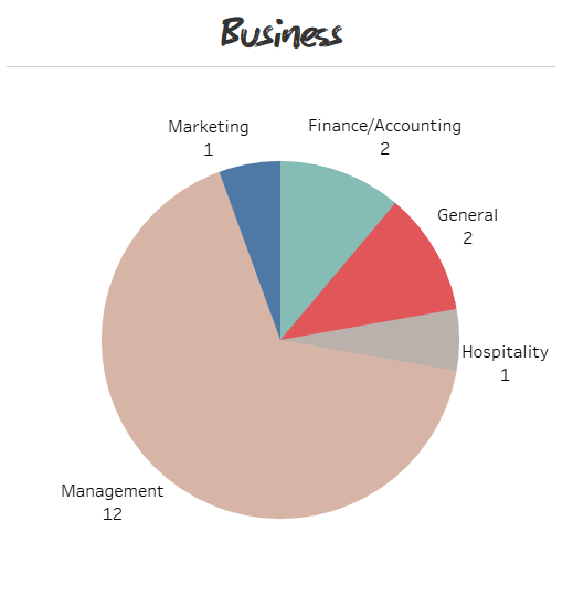 Players who studied business were the most difficult to break into majors because there is a lot of variation. Management, in particular, was combined with several other subjects. Retail, sports, consulting, and marketing all appeared with the marketing majors, and “administration” was grouped with management.