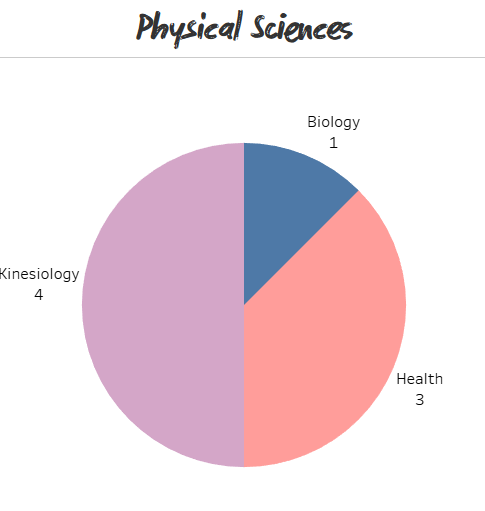 The physical sciences category is almost split in half between kinesiology and health majors, and there is a lot of overlap between the two. Atlanta’s Alexis Jones majored in health, kinesiology, and leisure studies, which was classified as health because it was listed first.