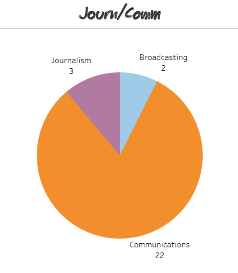 Unlike social sciences, this category was almost entirely made up of one major. Of the 28 players in this section, 22 (16.5% of all players) majored in communications, making it the largest major.