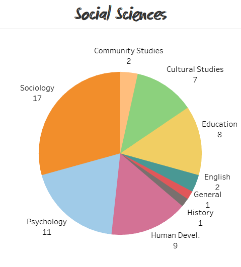 Human development (9 players, 6.8%), education (8 players, 6.0%), and cultural studies (7 players, 5.3%) rounded out the five heavy hitters in the social sciences category. UConn teammates Napheesa Collier and Katie Lou Samuelson both studied human development and family studies. Cultural Studies was one of the vaguer sub-categories, including many different majors like African-American studies and global studies.