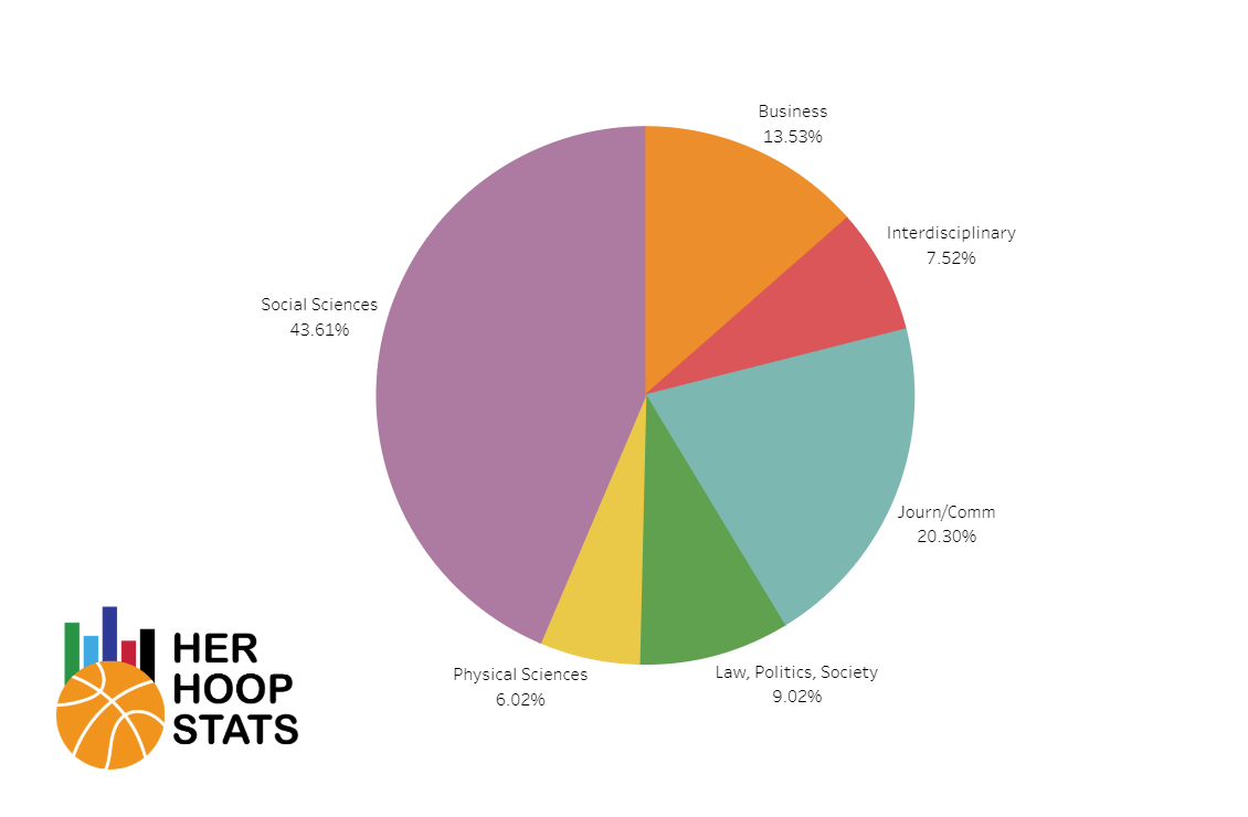 If you like this content, please support our work at Her Hoop Stats by subscribing for just $20 a year. Majors were collected by the writer from WNBA bios, NCAA bios, and LinkedIn.