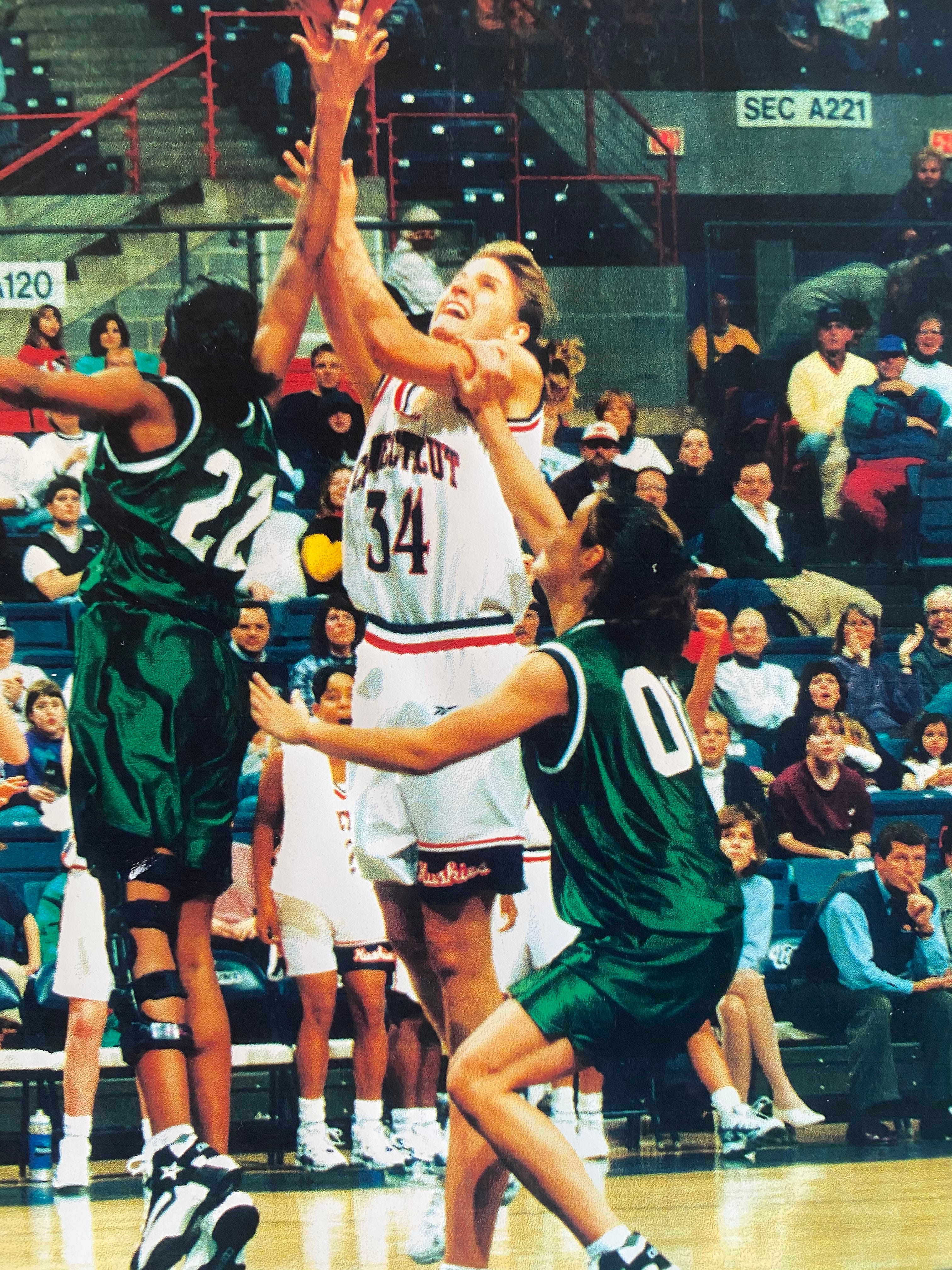 After her playing career, Gay coached girls’ basketball in her free time for twenty years before stepping down to watch her children play as they got older. She often thinks back to her time in Storrs and her struggle with self-confidence; she understands that many women struggle with it and wants young girls to know they don’t have to wait for someone to tell them they’re good enough.
