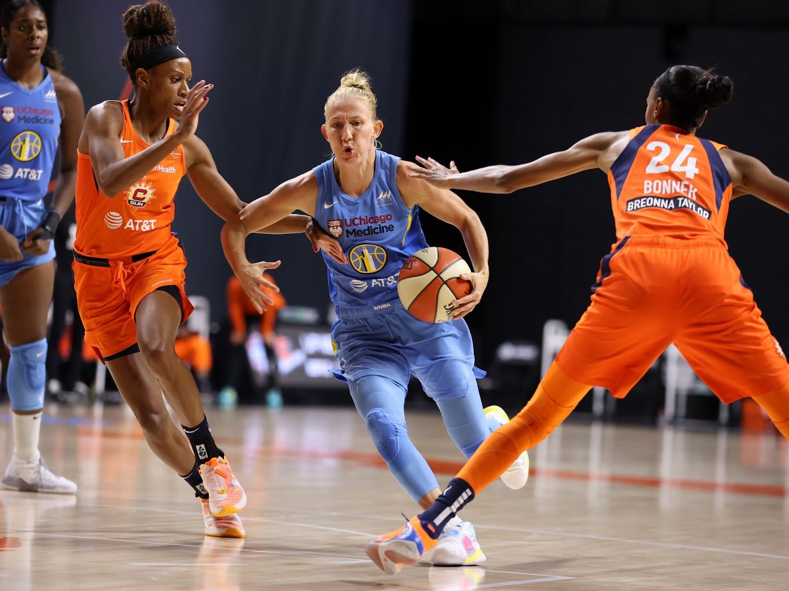 Wade may have addressed his team’s other 2020 bugaboo this offseason as well. No player in the league positively influenced their team’s performance more by being on the court last year than Vandersloot — the Sky’s net rating dropped a full 28 points per 100 possessions with her on the bench, from 9.3 all the way to -18.7. For comparison, the Aces had the second-best net rating last season at 10.0 while the Liberty had the lowest at -17.2. In other words, Vandersloot’s presence on the floor was the difference between the Sky functionally performing at Las Vegas level or at New York level.