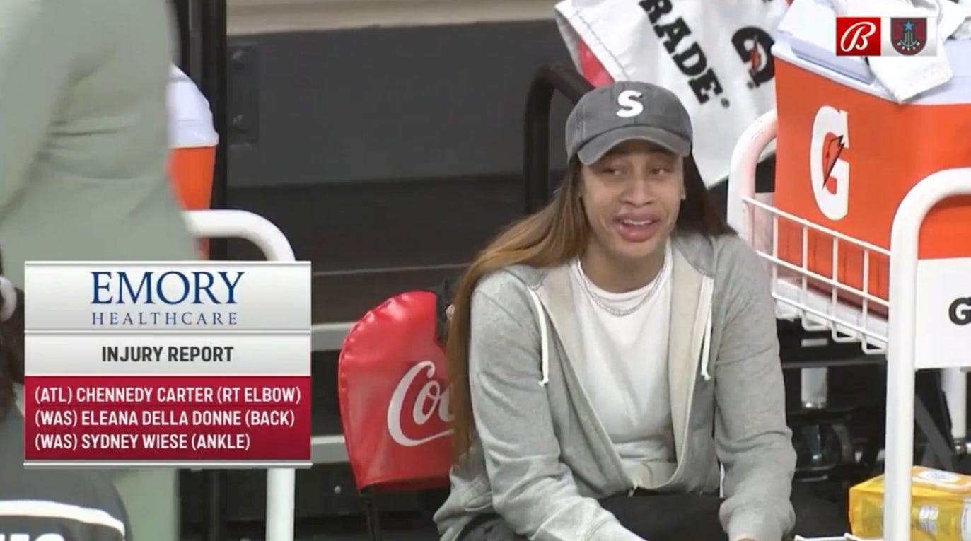 That's a former WNBA MVP, who'll be on the USA team at the Olympic Games next month if she can get healthy, having her name misspelled two different ways simultaneously on a televised WNBA broadcast. Unreal.